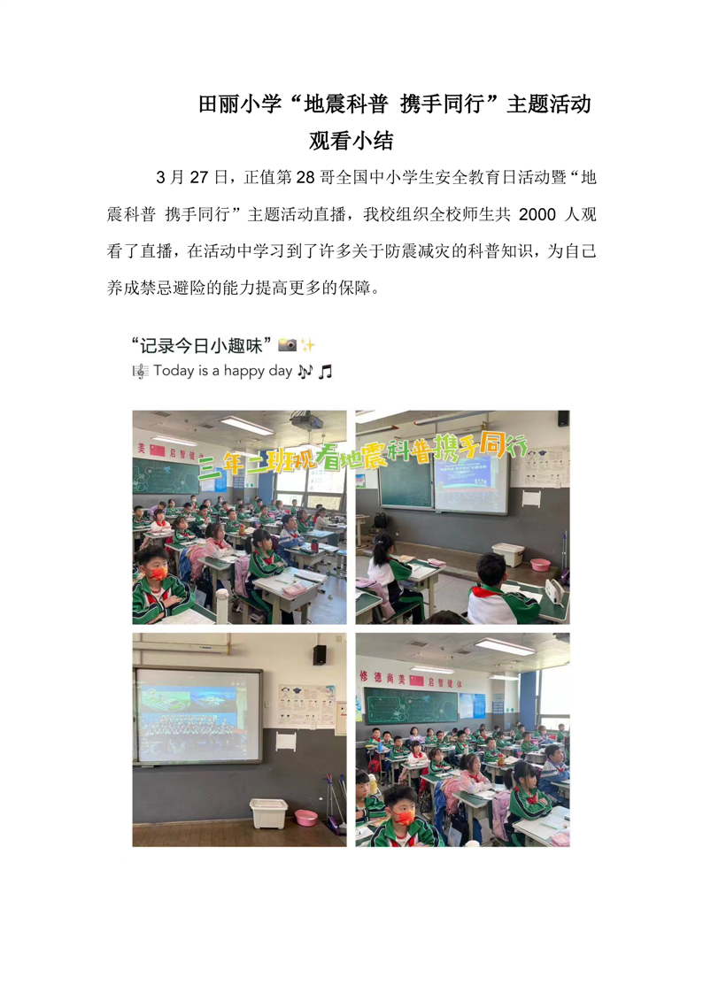 田丽小学“地震科普 携手同行”主题活动观看小结